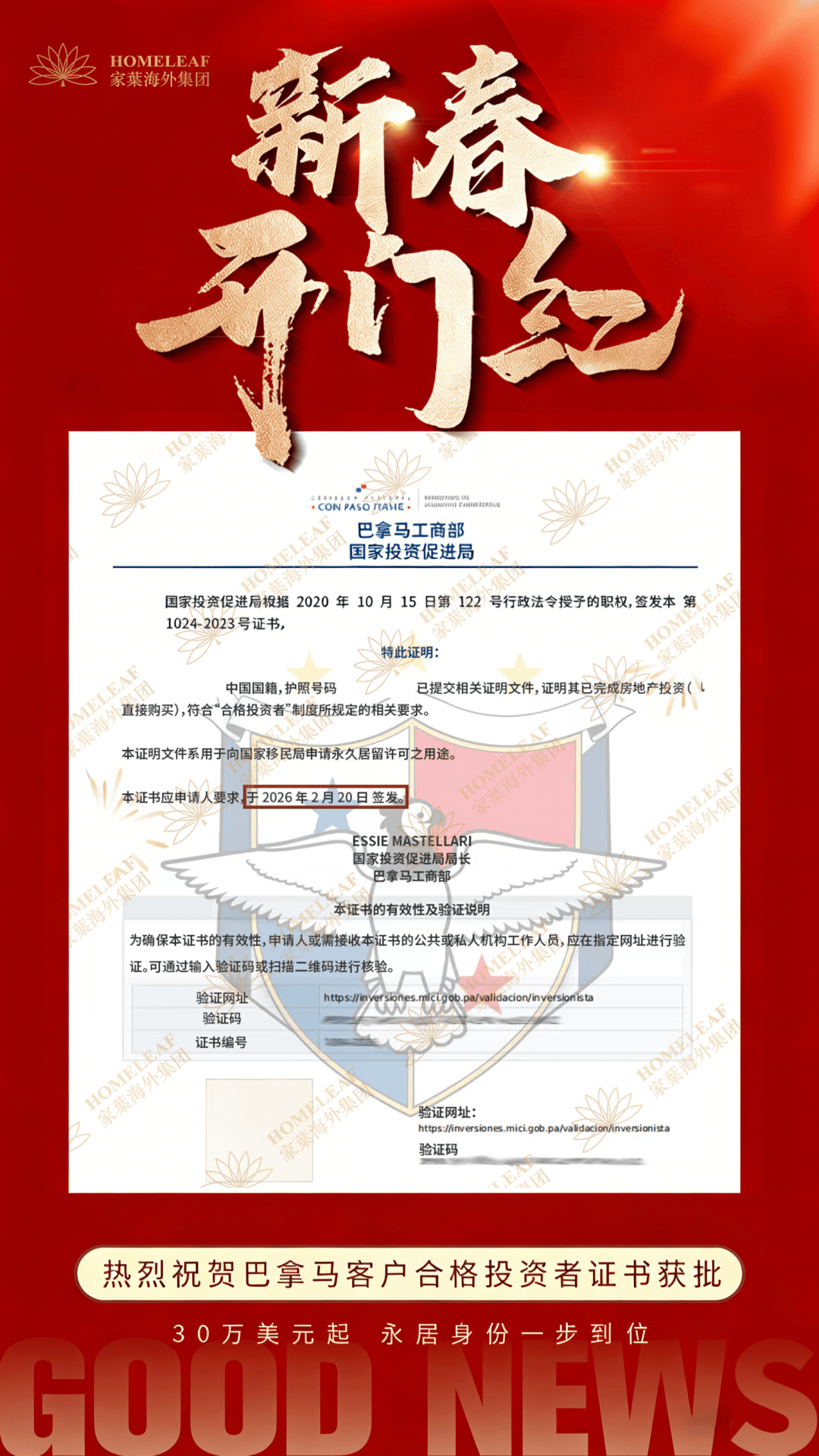巴拿马购房移民:祝贺客户成功获批【巴拿马合格投资者证书】官方投资认证文件正式签发,流程合规、节点清晰,再添成功案例。本案通过巴拿马工商部(MICI)全新启用的线上系统完成申请。该系统已全面替代传统线下窗口模式,实现线上提交、线上审核与系统化管理,标志着项目进入更加规范、数字化的发展阶段。这不仅是一张证书的获批,更代表着:✅政策持续运行✅系统升级规范化✅审批流程透明化✅官方监管数字化