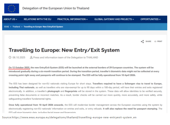 欧盟EES新入境系统实施