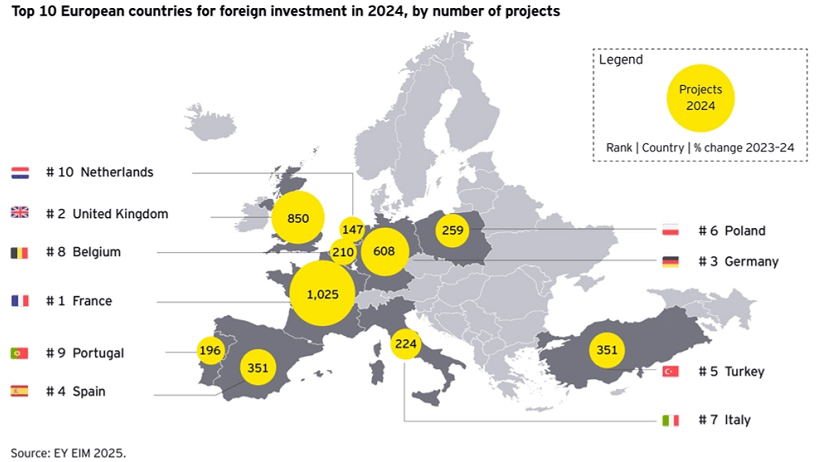 近日,在 EY(安永)发布的 2024 年欧洲外商直接投资(FDI)吸引力排名中,葡萄牙凭借稳定的营商环境与独特优势,成功跻身欧洲前十,成为外资眼中极具价值的投资目的地。