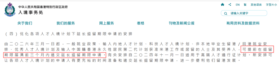 近日,香港入境事务处发布了多项重磅利好调整,其中一项关于人才签证续签的优化措施:自2026年3月1日起,人才入境计划的续签申请,均可提前在逗留期限届满前3个月内递交。