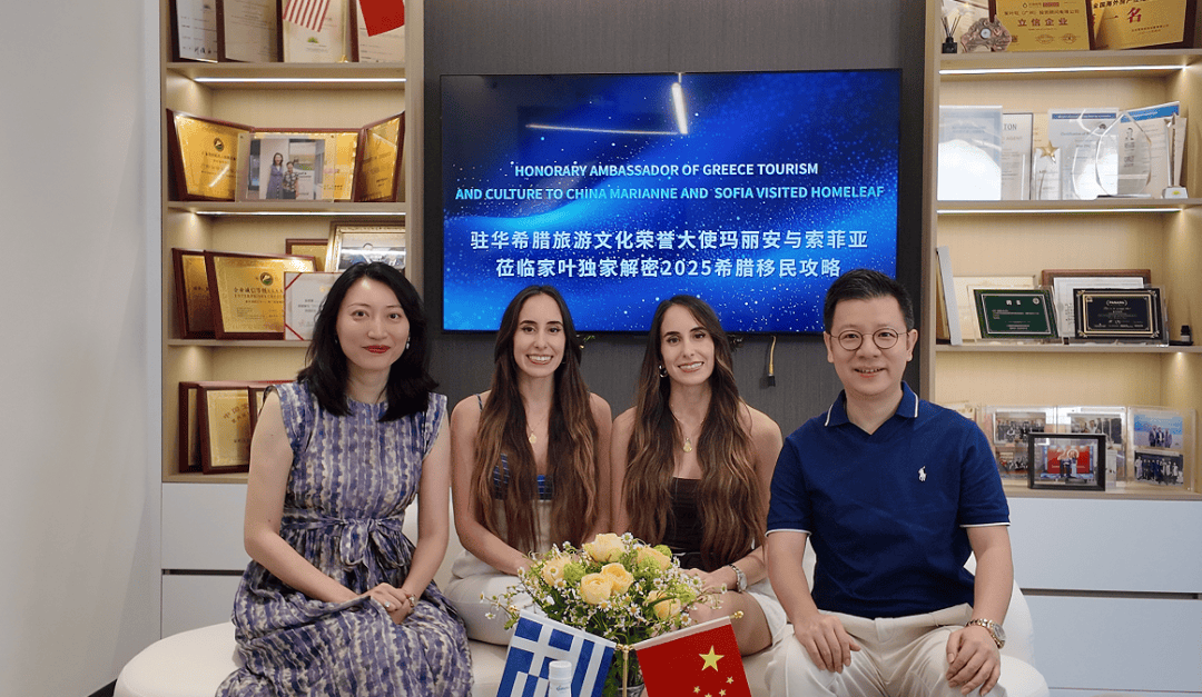 家叶集团两位创始人与希腊驻华旅游文化荣誉大使Marianna Erotokritou女士、Sofia Erotokritou女士合影: