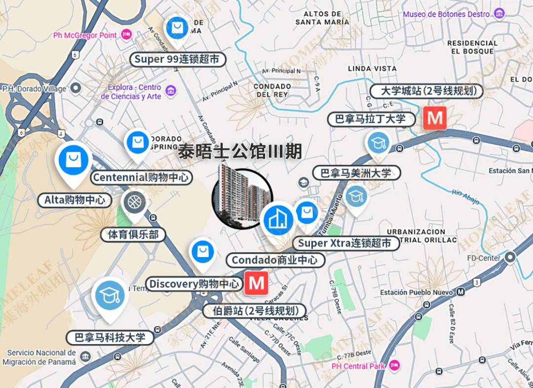 地标与交通:车程约15分钟至巴拿马城市中心,约21分钟至托库门国际机场。