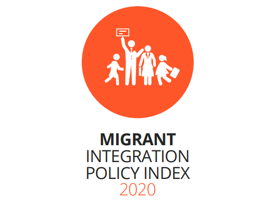 移民融合政策指数项目由欧盟委员会(European Commission)资助,由37 个国际组织组成。衡量的指标包括:劳动力市场流动、家庭团聚、教育、健康、政治参与、永久居住权、加入国籍的机会、反歧视等八个维度。