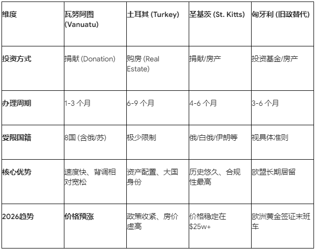 告别“廉价快护照”时代: 像瓦努阿图这样10万美元以下的护照项目将逐渐绝迹。**“高合规、高门槛、高透明”**将是2026年后的主旋律。