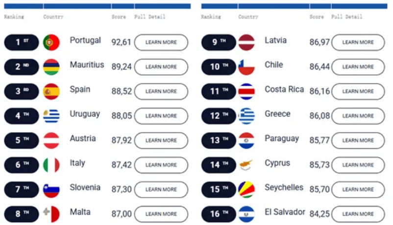 而根据最新发布的《全球退休指数报告2025》,葡萄牙在涵盖全球44个热门退休移居目的地的综合评估中位列第一。