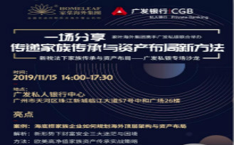 2019-11-05一场分享传递家族传承与资产布局新方法分享会亮点抢先看案例:海底捞家族企业如何规划海外顶层架构与资产布局解析:新形势下财富安全三大迷茫与困境方法:欧美高净值家族资产传承实战策略时间:2019年11月15日(周五)下午:14:00-17:30地点:广发私人银行中心···