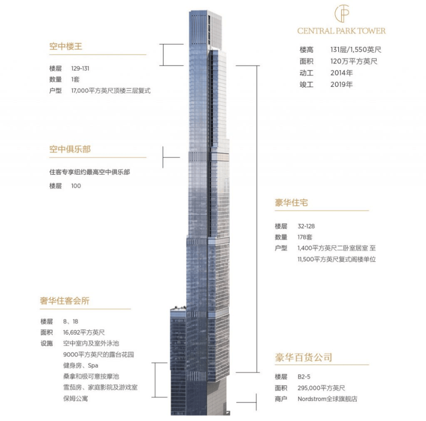 Central Park Tower位于纽约市曼哈顿黄金地段,被誉为“亿万富翁街” (Billionaire’s Row)的57街。汇集了世界上最昂贵、最奢华的住宅楼而闻名。吸引了来自全球的富豪名流,例如著名对冲基金创始人肯·格里芬 (Ken Griffin),比尔·阿克曼 (Bill Ackman),戴尔电脑公司创始人迈克尔·戴尔 (Michael Dell),沙特王子阿尔瓦利德(Prince Alwaleed Bin Talal)和墨西哥首富卡洛斯·斯利姆 (Carlos Slim),以及蔡崇信,刘銮雄,王健林等华人富豪纷纷在此配置资产。