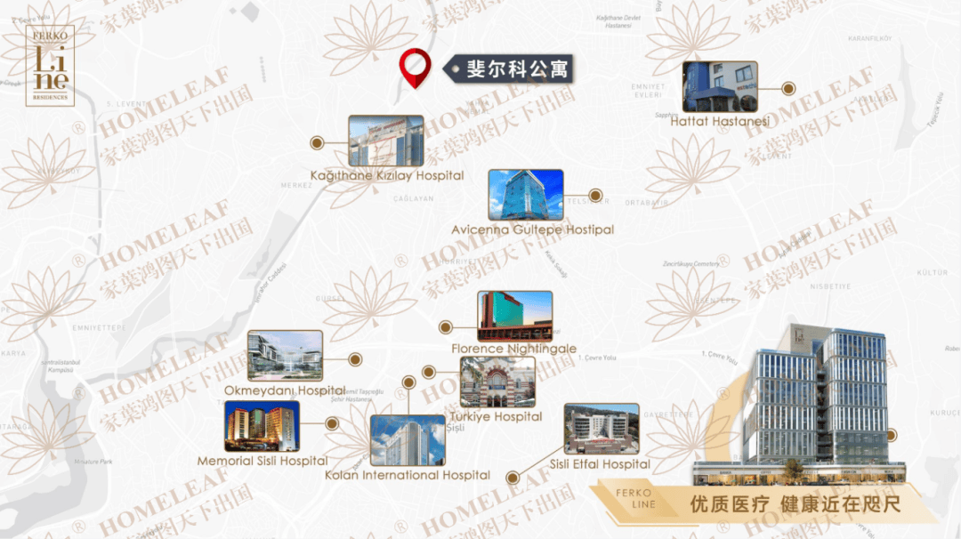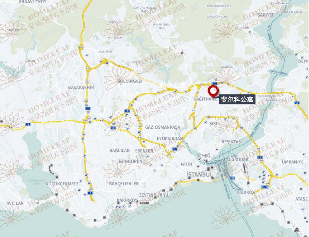 斐尔科公寓是位于伊斯坦布尔Kağıthane核心区的高端综合体项目,这是当下伊斯坦布尔最具投资价值的区域,该地区拥有伊斯坦布尔最为重要的两条高速公路-E5与TEM高速,这两条高速也是贯通伊斯坦布尔欧洲区与亚洲区的重要通路。距项目1公里即为Kagithane地铁站,交通极为便利。