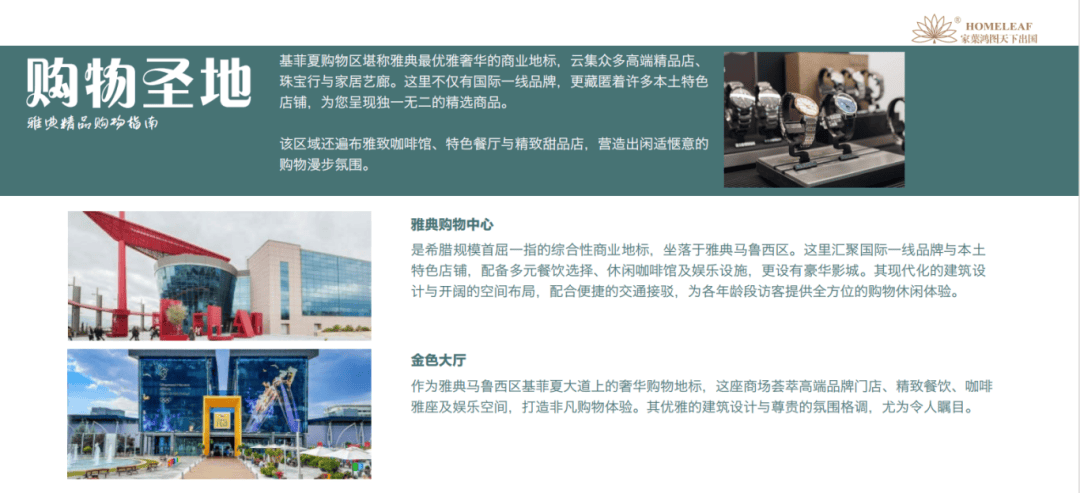 机场通达性极佳。这里繁华的商业街区、精致餐饮与文化场所相得益彰,营造出动静皆宜的宜居环境,完美诠释希腊精致生活的平衡之道。