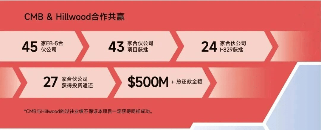 自2012年以来,CMB与Hillwood携手并进,共同打造了市场上最优质的EB-5合伙公司,这些合伙公司始终保持100%的I-526和I-829获批率。很少有区域中心能够达到如此高度,完美实现I-829获批和投资款的返还。组101采用了同样的架构,且久经验证,帮助EB-5投资人实现其移民目标。